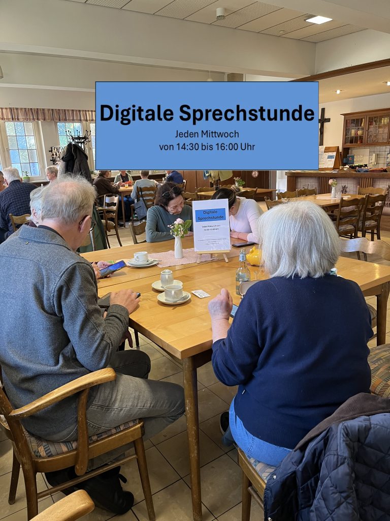 Die Digitale Sprechstunde findet jeden Mittwoch in der Zeit von 14.30 Uhr bis 16.00 Uhr statt. Sie bietet älteren Menschen Unterstützung bei Themen rund um das Handy, Smartphone und Tablet. In einer persönlichen und kompetenten 1:1 Beratung werden aufgetretene Probleme durch fachlich versierte ehrenamtlich Tätige gelöst. Eine Anmeldung ist nicht erforderlich. Ansprechpartnerin ist Rita Karrasch-Storck.