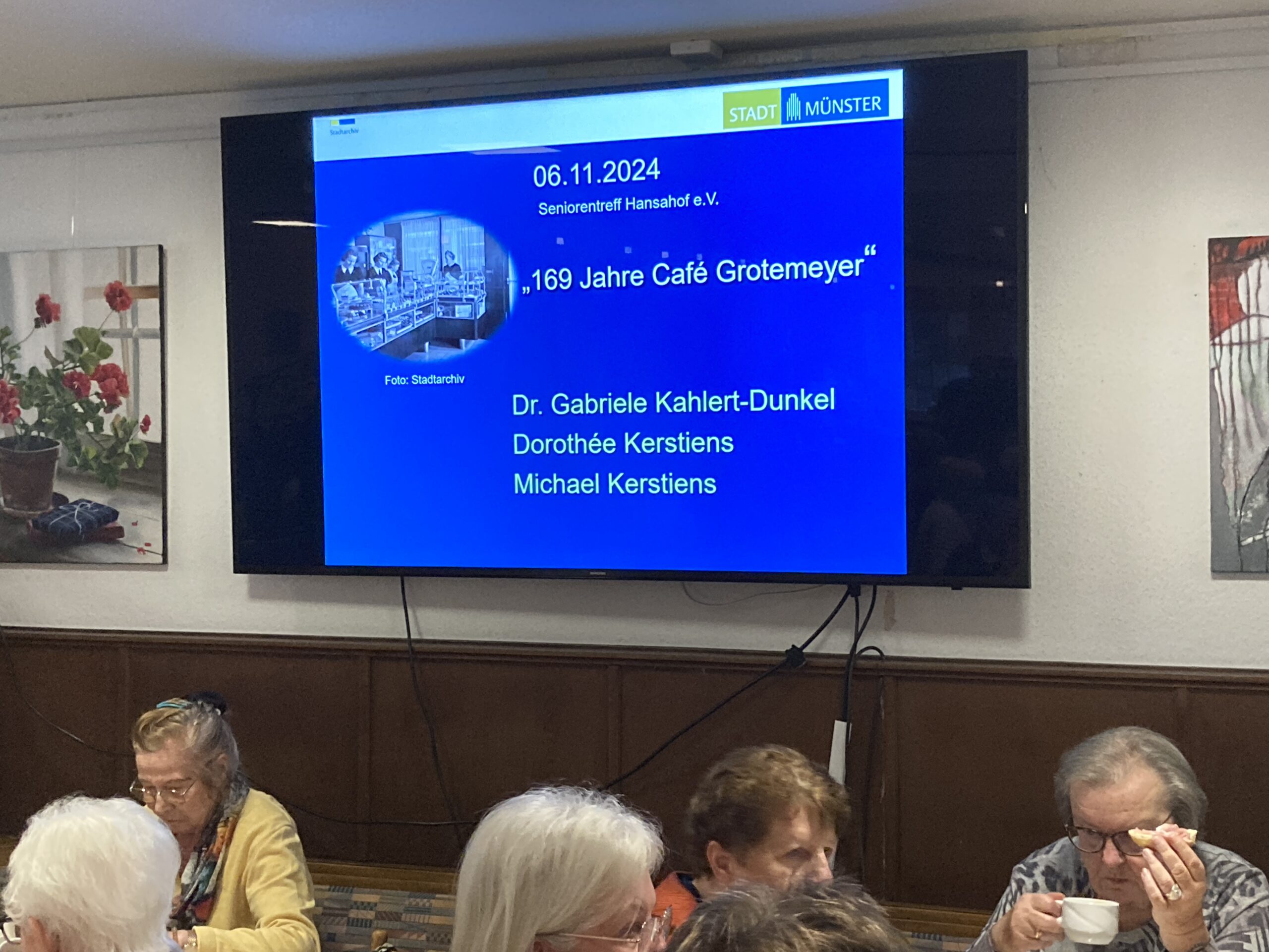 Es war mal wieder sehr voll bei Buchvorstellung mit den Geschichten vom legendären Cafe Grotemeyer, die das Autorenteam Frau Dr. Gabriele Kahlert- Dunkel, Dorotee`Kerstiens und Michael Kerstiens unterhaltsam vortrug.
